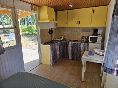 - une pièce de vie de 10 m2 avec kitchenette et un lit de 140x190.