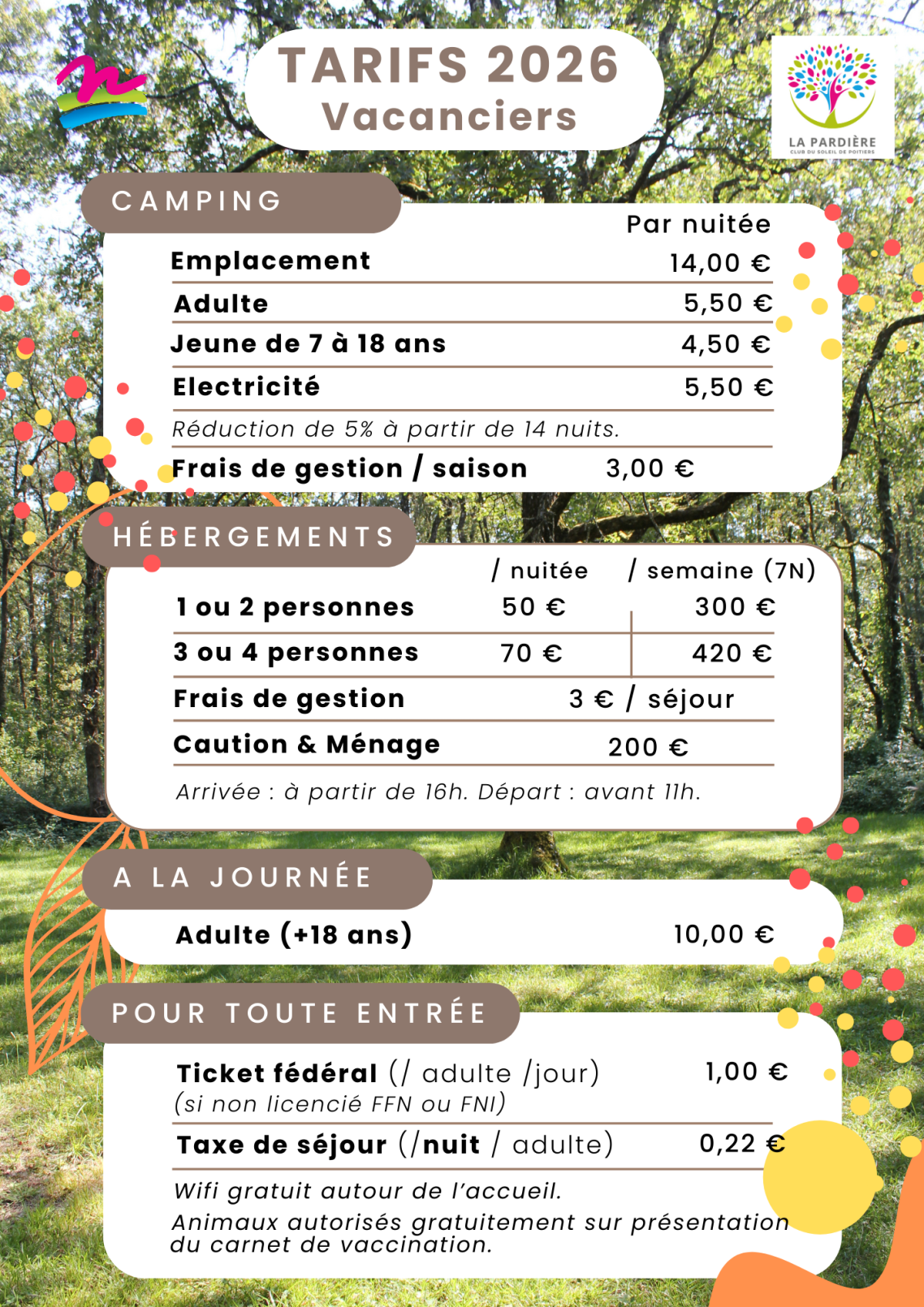 En séjournant au camping La Pardière, vous vous engagez à y respecter son calme, ainsi que le règlement intérieur du Club du Soleil de Poitiers.